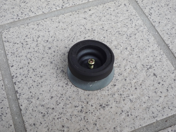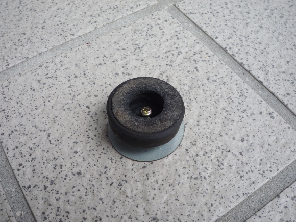 バネと一体化された脚となっており、簡単な構造ですが良く出来ています。丁度、底面のすべり止めが劣化していますので、交換します。 | |