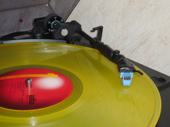 多分、学生時代でしょうか、ONKYOの針からSONY製のカートリッジに交換しています。当時としての高音質化(?)としていろんなことをやっていたみたいです。ターンテーブルの裏面にブチルゴムテープが貼ってありました。カートリッジの上面とトーンアームの中間部分にもブチルゴムテープが貼ってあります。これはこれとして、そのままにしておきます。 | |