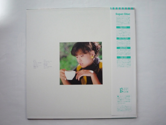 ベスト盤以降から3枚のアルバムをチョイスしました。年代順に聴いていきましょう。いきなり、とても良い録音の音が聴こえてきました。やっぱりこの頃のサウンドって今でも全く遜色なく存在できていますね。A面2曲目「まぶしい二人」、曲の入り方が素敵です。アナログ盤ですが、全くノイズが入らず、この部分音が小さいのですが、とても明瞭です。「さ」「し」「す」「せ」「そ」がとても極め細やかに聴こえます。バラード調の良い曲です。A面3曲目「Easy」、イントロはロック調ですが、曲の途中で変わったメロディになって、またロック調に戻る、少し不思議な曲です。でもサビは歌いやすいです。A面4曲目「夢を見させて・・」、なんか心がキュンとなるメロディラインがとても懐かしく切なくなってきます。歌い方も切ないようです。A面5曲目「北ウィング」、このサウンドが私は大好きです。アレンジも良いです。80年代サウンドって感じです。B面1曲目「100℃バカンス」、とてもカワイイ歌です。明菜さんの歌い方もカワイイ。作曲は細野晴臣さんではないですか。今でもカワイイサウンドで通用します。B面2曲目「夏はざま」、イントロはまさに演歌そのものです。でも明菜さんらしい歌になってます。そのささやくような、かすれるような歌い方がいいですね。明菜さんはアイドルでありながらもサウンドのクオリティがとても高いです。 | |