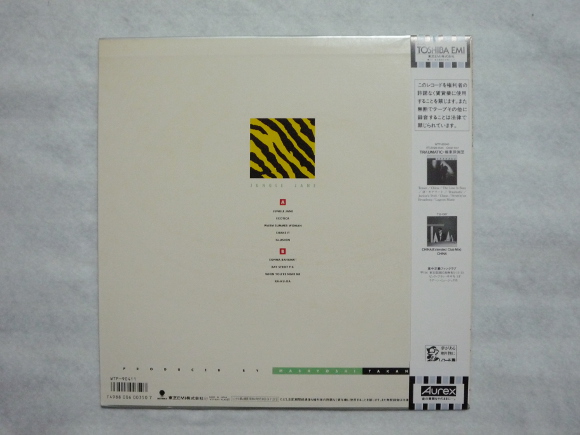 A面1曲目「JUNGLE JANE」、いい具合に低音が響いています。今日もスピーカーで聴いています。小気味よいサウンドが響いています。高中さんのギターサウンドが最高ですから。南国の雰囲気で。A面4曲目「SHAKE IT」、この乾いたサウンドがいいですね。ギターのメロディも最高です。好きな曲のひとつです。スピーカーの効果か今日はギターサウンドがとても綺麗に響いています。やっぱりアナログレコードって不滅ですね。今でもこれだけ良い音を出してくれるなんて。A面5曲目「ILLUSION」、この曲もよく聴く曲ですね。ちょっとスローテンポなところが心を落ち着かせてくれます。サウンド全体がクリアで明瞭、かつ暖かさがある、そんな気持ちで聴いています。B面2曲目「BAY STREET FIX」、これも小気味よい低音がビシビシと響いています。その中で乾いたギターサウンド。高中さんのギターは全く湿っていない、極めて乾いたサウンド。メロディも心にじ〜んときてます。B面3曲目「WHEN YOU'RE NEAR ME」、最初はちょっと歌謡曲っぽいメロディでとても聴きやすいサウンド。途中からダンサンブルなサウンドに。高中サウンド三昧の良い曲です。アナログレコードってやっぱり最高です。皆さんもこの世からアナログレコードがなくならないうちに聴いてみて下さいね。高中サウンド万歳です。 | |