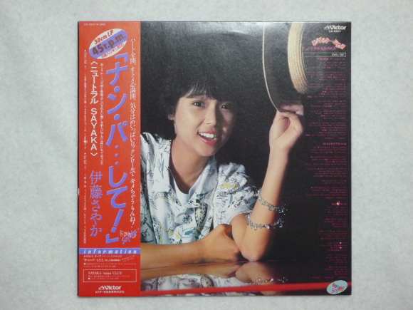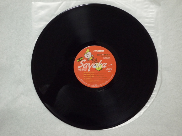 これは45回転の30cm盤です。6曲入りのミニアルバムです。でも45回転なんで33回転のLPよりかなり良い音質で聞こえるのは気のせいでしょうか。A面1曲目「天使と悪魔(ナンパされたい編)」、おっと思い出しました。この曲は聴いたことがあります。そうですね、デビュー曲でした。アレンジがちょっとテクノ調ですが、典型的なアイドルポップスですね。私はこのメロディ好きです。サビの部分の、YESかNOか・・・、というところはなんとも印象的で特に好きな部分です。A面2曲目「るんるん気分でDriving」、結構アレンジがテクノしてます。まあそんな時代だったということですね。最初に書きましたが、さやかさんは歌手と言うより、陽あたり良好、しか記憶に残ってません。すみません。でもこのサウンドは良いと思います。B面2曲目「1,000,000回 I LOVE YOU」、これはちょっぴりロック調です。決して歌は下手ではないと思いますが、ボーカルにうまくエコーがかけてあります。私はこの頃のさやかさんの声質はとても好きですね。ノリノリのサウンドがなんとも80年代ぽくって好きです。B面3曲目「そよかぜの誘惑」、ちょっと大人びた歌い方がなんともセクシーです。やっぱり45回転なんで全てのサウンドが良い音に聞こえます。典型的なアイドルポップスですが、途中の独り言がとてもしっとりとしてチャーミングです。メロディもしっかりとして良いと思います。なんともいえない懐かしさでした。こうしたレア品(私にとって)が入手出来るのもアナログレコード鑑賞の醍醐味ですね。毎週見ていた陽あたり良好を思い出して当時に浸っています。アナログレコードは一種のタイムマシーンのようなものですね。さやかさん、可愛かったです。 | |