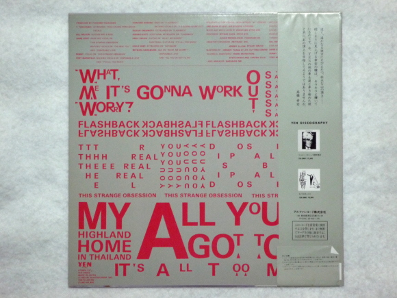 A面1曲目「Glass」、私はこのアルバムの曲は好きです。前作(音楽殺人)の明るいテクノポップからは大きく逸脱したこの感覚が好きです。期待を裏切ることで新しい方向を目指している感じがします。この単調なリズムの繰り返しがなんとも言えない感覚を与えてくれます。幸宏さんの独特のボーカルが私は好きです。アルバムのタイトル(ロマン神経症)が示す通り、神経質っぽいサウンドかもしれません。A面3曲目「Connection」、いきなりですが、この曲好きです。流れるようなメロディ、幸宏さんの妖艶なボーカル、そしてドラムのリズム。どれもいいです。このアルバムのCD持ってますが、やっぱりCDを超えるアナログレコードの音の素晴らしさに感動しきりです。癖になるそのサビのメロディが私の心にぐっと入ってきます。心の底からリズムに乗っている私です。A面4曲目「New(Red) Roses」、言葉では表せないシンセの音色が心に響いてきます。ボーカル無しのインストです。その音色に心を揺さぶられています。とても懐かしい感じで聴いてますが、何かしら心の奥底に残るメロディです。幸宏さんって凄いと改めて思いました。B面2曲目「Drip Dry Eyes」、ポップスっぽいサウンドの感じがします。でも派手ではなく、あくまでも幸宏さんのペースでゆったりと、そしてまったりと。その感覚がなんともいえませんね。ボーカルがそれを更に高めているように思います。B面4曲目「Charge」、これはまた良いメロディです。アレンジはちょっと複雑ですがメインのメロディは心地よいサウンドです。これもインストですが、実験っぽい感じもしますね、そのアレンジに。メロディからは何か明日への希望が少し沸いてきます。それにしても今こうしてアナログレコードで高橋幸宏さんのボーカルが聴けるなんてとても素晴らしいことと思います。まだまだアナログレコードは頑張ってます。 | |