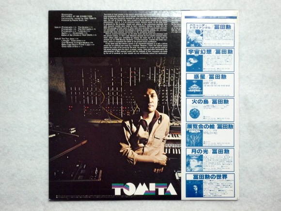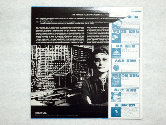 バイフォニック盤を聴きます。元々4チャンネルマスター・テープで制作されていて、それを2チャンネルステレオでも似たような効果が出せるとして制作されたのがこのバイフォニック盤です。オリジナルより時間をおいてリリースされたものです。中古のアナログレコードなので、その使用状況や保存状態で再生の状態は変わると思いますが、このアナログレコードには驚きました。とても良い音がしています。そしてダイナミックレンジの広さに驚かされます。A面1曲目「雪は踊っている」、トミタさんの月の光はこのバイフォニック盤が始めてです。まずアナログシンセの音色の優しさに驚きを感じます。そしてトミタさんならではのアレンジ。クラッシックの原曲を知らないのでどの程度のアレンジかわかりませんが、アナログシンセの音色でサウンドは色付けされていると思います。A面2曲目「夢」、バイフォニックの感覚はヘッドフォンでもよく感じることが出来ます。アナログシンセの独特の音色が従来の楽器では出せないメルヘンチックな感じをとてもうまく表現していると思います。多分この時代にこれだけのサウンドを完成されるには相当な時間が掛かったと思います。本当にお疲れ様でした。あなたの作られたサウンドは今でもこの世の中で生きていますよ。そんなことを思わせる曲でした。A面5曲目「アラベスク第1番」、この曲の人がしゃべっているような音色も後々よく使われている音源ですね。まさしくトミタサウンドの原点がこのアルバムにちりばめられています。この曲もとても気持ちよいサウンドを聴かせてくれます。今こうしてアナログレコードからトミタさんのサウンドが聴けることに感謝しなければ。B面1曲目「沈める寺院」、とても幻想的な音色がサウンドを奏でています。クラッシックの原曲を知らない私はこのトミタサウンドが全く新しい音楽に聞こえます。それほどトミタ色でアレンジがなされているということでしょうか。あきらかにシンセでないと出せないような音色が続いています。そしてアナログシンセならではのこの暖かい響きがとてもいいですね。重なり合う音の響きもとても心地よいと思います。B面4曲目「ゴリウォーグのケークウォーク」、どこかで聴いたようなメロディ、ボコーダを連想させるような音色がいいですね。この音色は後のアルバムの宇宙人同士の会話にも使われていたような気がします。まさしくトミタサウンドの原型の集まりですよね。とても軽快なサウンドがとても好きになりました。B面5曲目「雪の上の足跡」、冬の風のような音色で始まりました。昔の何かのドラマの始まりのようなサウンドです。冬の恐ろしさを題材にしたドラマ。クラッシックの原曲を知らないので勝手なことを書いてますが、そのように聞こえます。これがトミタサウンドなんですよね。アナログシンセサイザーを駆使してこのサウンドを作り上げていかれたその意気込みと力強さを改めて感じています。そしてそれを今の時代に再現してくれるアナログレコードはとても貴重です。 | |