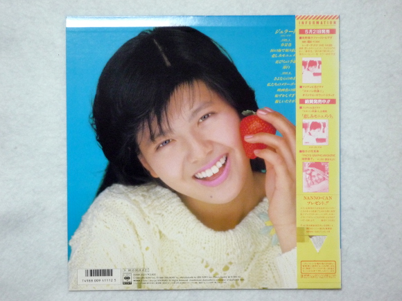A面1曲目「ガールフレンド」、今回は豪華8ページ写真集付きです。ナンノちゃんボーカル全開で始まりました。この微妙な歌い方に痺れます。そしてとても可愛い声です。当時の売り出し方の戦略かもしれませんが、あまりにも抑揚の少なさは相変わらずです。もっと元気でポップな歌でも良いと思うのです。A面3曲目「ニュー・イヤー・イヴ」、ちょっと寂しさを感じるサウンドです。ナンノちゃんも少し控えめに歌ってます。もう少しその独特なボーカルを活かせる曲が良いかと私は思います。ちょっと大人びたサウンドにしてあるのでしょうけど。A面5曲目「呼びすてにしないで」、イントロから良いですね。ボーカルもナンノちゃん全開。ちょっとアップテンポでいいです。アレンジがまた気に入りました。メロディラインも心にぐっさりときます。何かの悲壮感の中に明るさが見えるサウンドです。この曲Goodです。B面1曲目「接近(アプローチ)」、シングル曲です。リアルタイムで聴いた記憶があります。メロディラインがとても懐かしいです。ナンノちゃんの歌い方が可愛くてなんともいえません。アレンジはとても明るくなってますがベースとなるメロディラインは独特の切なさを感じさせます。このギャップがいいのかも。懐かしい曲で時間をタイムスリップ出来る。なんてアナログレコードって素晴らしい。B面5曲目「曲がり角蜃気楼」、明るめのサウンドにナンノちゃんのボーカルが映えてます。可愛い声に癒されます。心がキュンとします。そして若い頃の自分に戻れるような気がします。アルバムのラストに相応しく、何か明るい未来につながっていく曲のようです。こうしてアルバムを聴いてくると80年代って本当に音楽にとっては良い時代だったと思います。 | |