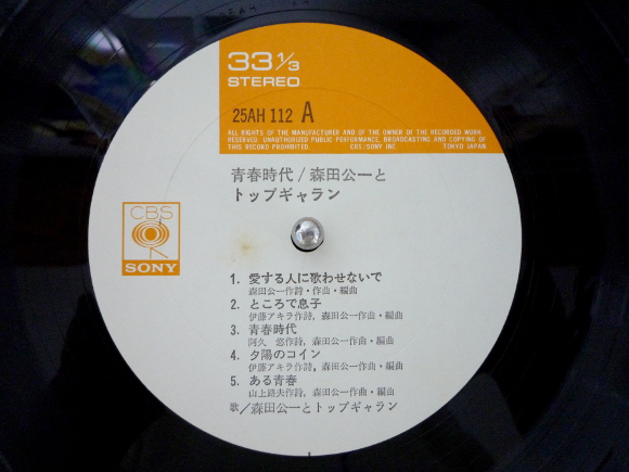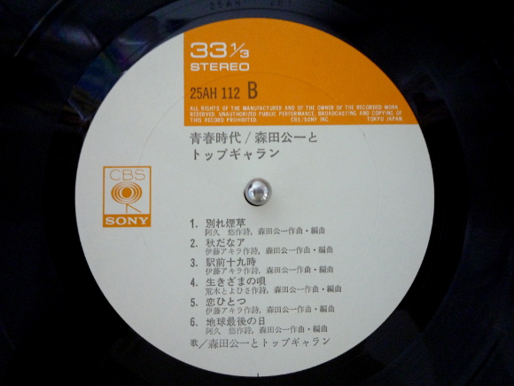 A面1曲目「愛する人に歌わせないで」、いかにもフォークソングな感じです。時代的にはそんな時代ですね。アコースティックギターと森田公一さんのボーカルで聴かせてくれます。とてもしんみりとした歌です。フォークソングなので歌詞がとても重要で心にずっしりときます。A面2曲目「ところで息子」、ちょっと明るめの曲調で始まりました。アレンジがとても面白いです。歌詞はちょっと際どいですね。今の時代では多分流せないかもです。とても軽快なサウンドに癒されます。面白い歌です。A面3曲目「青春時代」、ついにきました。私がカラオケで歌い込んでいる曲です。歌詞もサウンドもいかにも青春している感じがとても良いです。カラオケの最後に皆で大合唱しながら歌うとても楽しいです。私はこの歌で爆発してますね。本当に青春時代は良かったと。この曲調の明るさがたまりません。いい歌はいつの時代でもいい歌です。A面4曲目「夕陽のコイン」、ちょっと暗めの歌詞です。曲調もちょっと演歌っぽい。でも何かの懐かしさを感じます。正直、青春時代以外の曲は初聴のはずですから、それでもそう感じるのです。やはりフォークソングの時代から私も音楽の世界に入り込んでいた年齢なんですね。B面1曲目「別れの煙草」、このイントロいいですね。演歌とフォークソングが合体しているような感じ。なんともいえない曲調が私の心にグサリと刺さります。サビの部分が何かのコマーシャルソングに使えそうな感じです。B面6曲目「地球最後の日」天国からのささやきか。そんな歌の入り方。歌詞的にはタイトルそのもの、地球最後の日の歌。さよなら人よ愛よ神よ、って何か寂しい。でも森田さんのボーカルがとても力強いのが救いです。アルバムのラストに相応しい壮大なサウンドです。40年以上も前のアナログレコードから再生される音楽はまだしっかりと私達の心に刻み込まれています。本当にアナログレコードって素晴らしい。 | |