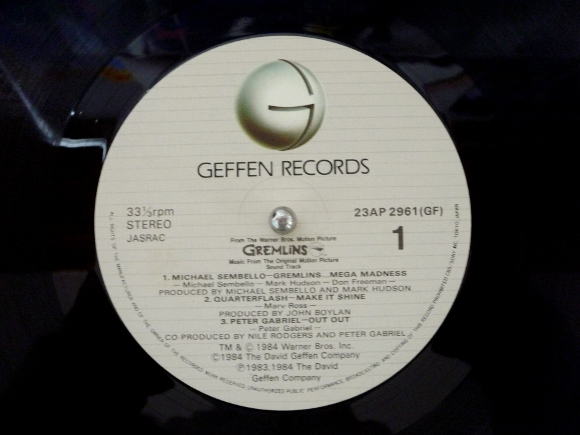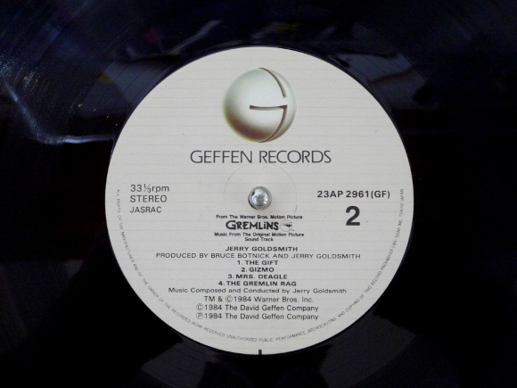 A面1曲目「Gremlins・・・Mega Madness」、いかにも80年代っていうサウンドです。ポップス調でロック調的な曲調です。青春映画っぽいところもあります。A面3曲目「Out Out」、ちょっとパンク調のサウンド。曲の途中のハイ・ハイ・ハイっていう掛け合いが面白いです。それにしてもどの曲を聴いてもアナログレコードから流れてくる音楽は最高に素晴らしいものです。CDではなくアナログレコードへの流れが判るような気がします。B面1曲目「The Gift」、B面はインストです。大スクリーンの映像が目に浮んできそうです。そうこんな感じだった、段々とぼやっとですが何かを思い出してきた気がします。映画音楽って本当に素晴らしいと思います。B面2曲目「Gizmo」、レコードの帯の言葉を借りてそのままですが、可愛くて、頭が良くて、いたずら好き、知的、そして危険なギズモちゃんのテーマです。何かをしでかしたのでしょうか。その動きが音楽から伝わってきます。私のどこかの記憶に残っているものが呼び起こされているよう。その感覚に浸っている間にギズモちゃんはいたずらでもしたかな。B面4曲目「The Gremlin Rag」、これです、これです。この曲ですよ私が待っていたのは。鳥肌もんです。映画のエンディングでしょうか。私の記憶にはこの曲がはっきりと残っています。この映画はグレムリンの可愛さもありますが、この曲が全てではないかと思っています。今こうしてアナログレコードで聴けることに本当に感謝しかありません。アルバム、そして映画のエンディングにとても相応しいサウンドで間違いありません。 | |
