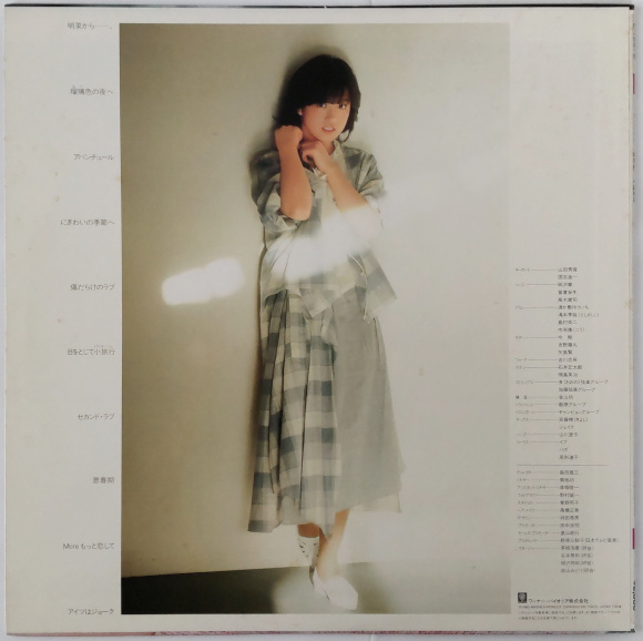 A面1曲目「明菜から・・・・。」、萩田光雄さんの曲に乗せて、明菜さんからのメッセージです。寂し気な旋律が明菜さんっぽいです。メッセージの内容が今の世の中にリンクしているよう。A面2曲目「瑠璃色の夜へ」、私はシングルのA面でも良いと思っているほど好きな曲です。陽と陰の明菜さんが混じっているイメージがよく出ていると思います。私的にはくせになるメロディラインなのです。このアナログレコードから聞こえる明菜さんの息づかいが生々しい。A面4曲目「にぎわいの季節へ」、寂し気なイントロです。当時から感じていましたが、今聴いても明菜さんは歌が上手いです。感情の入れ方が素晴らしい。曲ととてもマッチしています。曲の途中から激しさが現れます。壮大というかスケール感が違います。並みのアイドルではなかったのかも。曲に負けていない芯の強さを感じます。B面2曲目「セカンド・ラブ」、大ヒットシングルの登場。何度も何度も聴いてますが、このアナログ感がいいですね。CDでは絶対味わえない感覚。アナログ沼にはまるとなかなか抜け出せません。B面3曲目「思春期」、売野・芹澤コンビと言えば少女A。そんな世界観を感じます。明菜さんには低音側と思われるメロディに合わせて歌う歌い方が明菜さんらしいっていうかまさしく明菜ワールド。ジャケットの中に入っている歌詞カードが明菜さんの手書きです。人柄が出ている筆跡と思いますが、こういうのが今見れるのもアナログレコードの魅力ですね。アルバム全曲の編曲が萩田さんですのでアルバムに統一感があります。多分リアルタイムではこのアルバムを聴いていなかったと思います。でも今改めて聴いてみると明菜ワールド全開でした。 | |