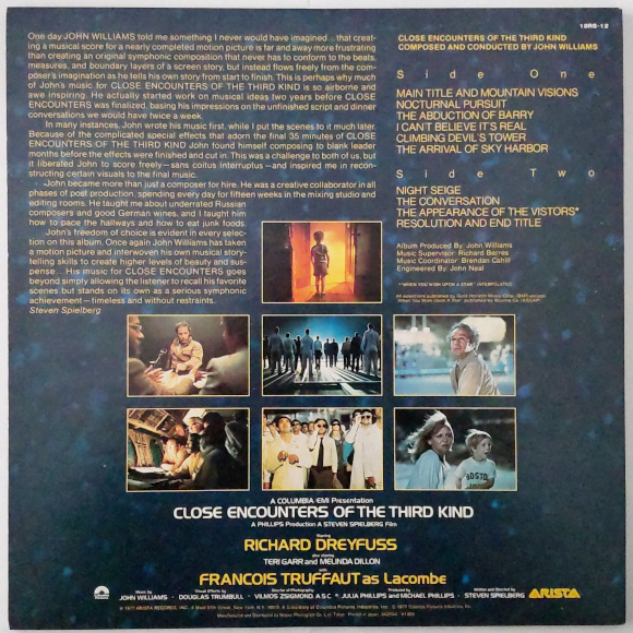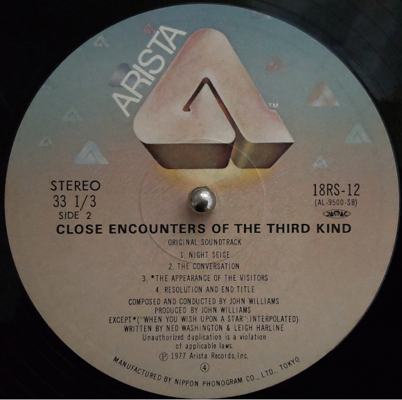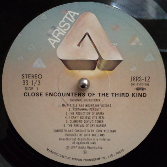 A面1曲目「メイン・タイトル」、確かに見たはずの映画なのに鮮明な映像が私の頭の中にまだ浮かび上がってきません。じっくり聴いていきましょう。A面3曲目「バリーの誘拐」、UFOっぽい音楽。低音がかなり良い味を出しています。この曲好きです。いかにも映画サウンド的な。A面6曲目「スカイ・ハーバーへの到着」、音楽はジョン・ウィリアムスが担当しており彼なりのミュージックセンスがいたるところに感じられます。映画にピッタリのサウンドです。オーケストラによるサウンドは厚みがあって広がりが大きくとても華やかに感じます。コロムビア映画サントラ・シリーズとして発売されたレコードらしくライナーノーツの日付がDec.1979/再 と記載がありました。レコードとしては少しパチパチノイズが多かったようですが、これもまたアナログレコードの魅力。その中から聞こえる音楽は全く色あせておらずとても楽しく聴けます。B面2曲目「宇宙人との対話」、これが有名な宇宙人との対話の音楽ですね。当時よく聴いた記憶があります。今改めて聴くとちょっとお茶目なところも感じられます。オーケストラの楽器の音が響いてくる感じは最高です。低音の響きがたまらない。映画音楽においてオーケストラサウンドはとても迫力があって音圧が凄まじい。まるで映画がこちらに向かってくるようです。アナログレコードからの音楽は生々しくて最高です。 | |