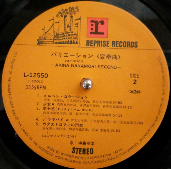いきなりのインストからのスタートです。ちょっとびっくり。A面1曲目「キャンセル!」、いいですね、なんど聴いても。アナログレコードで聴くこの曲は最高です。ベストアルバムでよく聴いています。シングルA面になってもいいほどの良く出来た曲だと私は思います。サビのノリノリ感が80年代バンザイですね。A面4曲目「咲きほこる花に・・・」、明菜さんのささやくような歌い方がとても可愛いです。来生たかおさんらしいメロディラインがいいですね。萩田さんのアレンジに感動。A面5曲目「ヨコハマA・KU・MA」、この曲もよくベストアルバムで聴く曲です。作曲は南佳孝さんで、佳孝サウンド満載らしい曲になってます。明菜さんはどんな曲も上手く歌われていて凄いと今更ですが思います。B面2曲目「少女A」、明菜さんのシングルの中でも名曲と私は思っています。初めて聴いた時は衝撃でした。今聴いてもいいですね。名曲は時代を超えても全く色あせていない。私達の若い時の記憶を呼び戻してくれます。そして気持ちまで若返らせてくれます。歌詞もメロディもアレンジも最高です。B面4曲目「X3ララバイ」、明菜さんにしては、ちょっとかわったサウンド系かな。バイバイがXの3乗で納得。そうきたかですね。森雪之丞さんの作詞素敵です。サビのメロディラインがクセになりそう。B面5曲目「カタストロフィの雨傘」、いかにもタイトルらしいイントロのサウンド。壮大なイメージがいいです。スローテンポな曲に語りかけるような明菜さんの歌い方。このボーカルも明菜さんの魅力です。アルバムの最後に相応しいスケール感の大きさがいいです。やっぱり80年代のサウンドって私達の青春でした。まとめて、このアルバムの音質は最高のクオリティでした。このレベルでアナログレコードが保存されていたことに感謝。曲ごとに作曲家を変えたアルバムになってますが、アレンジはほとんどが萩田光雄さんなのでアルバムのコンセプトが統一されていてとても良いと思います。 | |