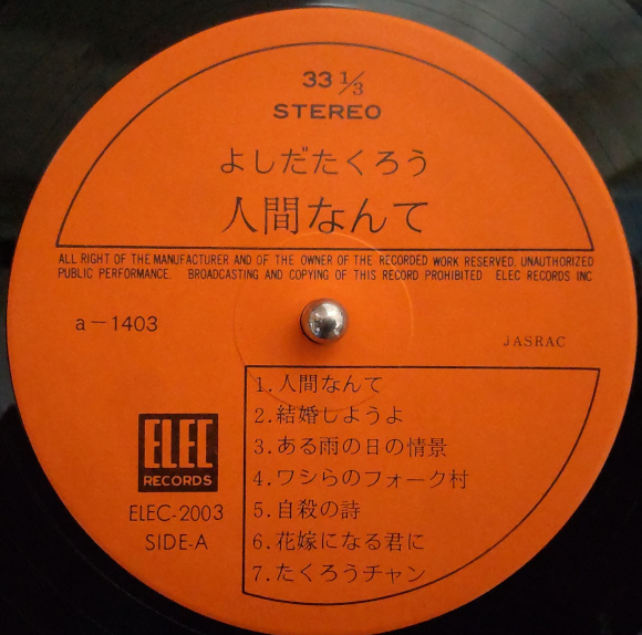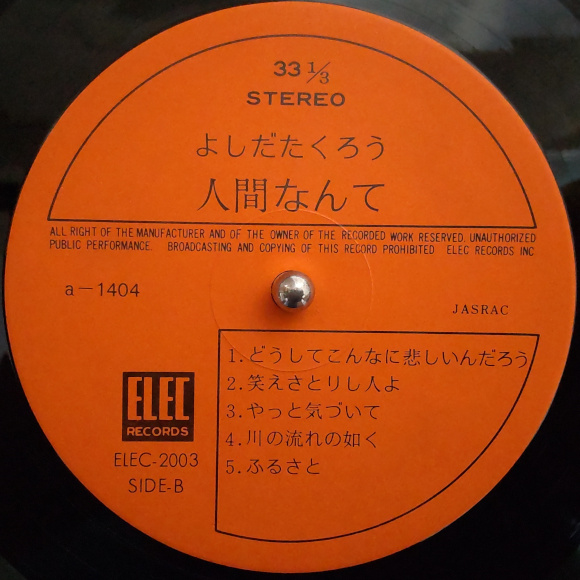 A面1曲目「人間なんて」、フェードインしてくる歌なんですね。はじめ、声小さいって思いました。このサビいいですね。人間なんてラララーラーラー。ていうか、レコードに入ってるの短い。A面2曲目「結婚しようよ」、う〜ん、名曲です。心のどこかに残っているもんですね。多分私はリアルタイムでは拓郎さんの時代じゃなく、もう少し後の世代です。でも拓郎さんの曲は沢山知ってます。この曲もカラオケで歌いたい曲です。でも1971年のアルバムに入ってたんですね。A面7曲目「たくろうチャン」、完全に遊んでいる歌ですね。最初の、う〜んと歌いながら笑っているのが面白い。とても明るい歌になってます。フォークソングってとても自由。B面1曲目「どうしてこんなに悲しいんだろう」、どこかで聴いた歌かもしれない。やっぱりフォークソングって曲もやけど歌詞なのね。とても重要。B面3曲目「やっと気づいて」、これはフォークっぽい入り方。そしてエレキの音色がいいですね。とても良いアクセントになってます。叫びサウンドに近い、いかにも拓郎さんて感じなの。しんみりとした歌です。これぞフォークソングやね。曲は長いです。B面5曲目「ふるさと」、沢山の人でわちゃわちゃ歌っているの楽しい。およびじゃないって、イントロ。わかる人にしかわからんかも。アルバムの最後に相応しいとても楽しい曲です。心ウキウキします。こうして聴いていると拓郎さんてフォークソングの先駆けやったんですね。長いシンガーソングライター生活お疲れ様でした。拓郎サウンドはアナログレコードと共に生き続けます。ありがとうございました。ライナーノーツには直筆の譜面が書いてあります。時代を感じます。 | |