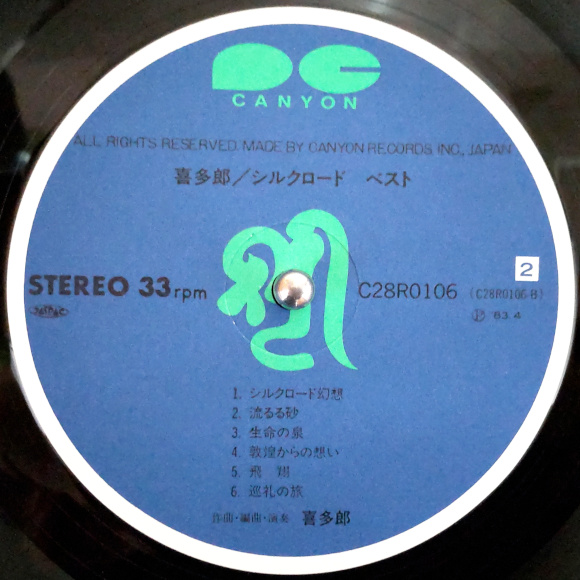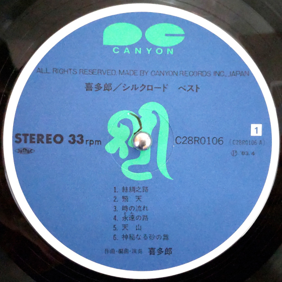 A面1曲目「絲綢之路」、もう何度も何度も聴いている曲。この曲を聴くとNHKの番組を思い出します。多分私の親が見ていたから同じようにその番組を見ていたと思います。喜多郎さんのシンセの音の響きは最高です。猛暑の中、エアコンの効いた部屋で聴くサウンドは格別な音となって昇華されていきます。すみません、このレコードは夏休みに聴いていました。A面2曲目「飛天」、つなぎ目無しで2曲目に突入。さすがベスト盤ですね。40年も経ったアナログレコードから蘇る音には懐かしさを覚え、このレコードという保存フォーマットの素晴らしさに改めて感動。これはデジタルでは味わえない。データが物として存在しているから、ジャケット、円盤、ライナーノーツなど、人が手に取れる、見れる、読める等々。アナログレコードこそ音楽を未来に残していける最適な媒体ではないかと。B面1曲目「シルクロード幻想」、このキラキラ感は何だろう。これがアナログレコードってことか。シンセサイザーの音色を優しく包んで届けてくれる。決してくすんでいない、晴ればれとしたサウンド、この広がり、まさしくシルクロードの風景。このメロディも懐かしさを思い出させてくれるよう。全ての曲が良かったです。NHKのシルクロードの番組を思い出し、当時の世の中を思い出し、私の青春を思い出し、やっぱりアナログレコード最高です。その時代をリアルに生きた私達の年代の人々にとって。 | |