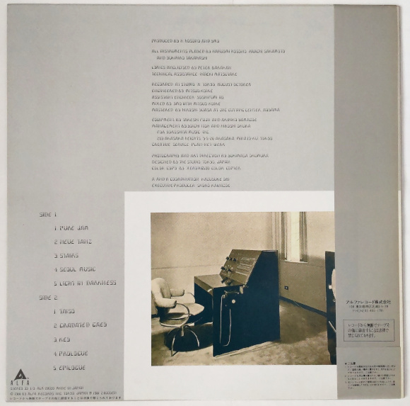 A面1曲目「PURE JAM」、アナログレコードは迫力が違いますね。この曲はベスト盤なのでよく聴いています。ハッキリ言ってこの頃のYMOファンって、この当時のサウンドをあんまり好みでないと思っていた人も多いと思います。私もそのひとりでした。そして今、多分初めてアルバムのレコードを聴いている。そこで感じるのは幸宏さんのボーカルがとても懐かしい。A面2曲目「NEUE TANZ」、クラフトワークを思わせるサウンド感。YMOのコアなファンは好きでしょうけど、正直これはYMOではない感。少なくとも私の中では。でも否定している訳ではない。なぜなら私はクラフトワークのサウンドも大好きだから。当時のYMOを見ていると、こういうサウンド感になることをある程度想像できたかと。A面4曲目「SEOUL MUSIC」、コアとなるリズムがどの曲も同じように感じる。正直当時目指していた方向性がよく判らないような気がする。教授にしろ、幸宏さんにしろ流れるようなメロディを聴いてみたい。YMOとしては最後のオリジナルアルバムだから。まあこのアルバムをYMOとして高評価をしている人もいるので、過激なことは言えませんが、私の好きなYMOはアルバム:ソリッド・ステイト・サバイヴァーの頃が頂点だったのかも。B面4曲目「PROLOGUE」、教授感、満載のサウンドです。何か病んでないか、って思わせる曲みたい。なんやかんやでミュージシャンも大変なんですね、というのが伝わる感じ。なぜか、効果音で右側奥から聞こえてくる機械音の空間の広がりは素晴らしい。B面5曲目「EPILOGUE」、4曲目とつながっています。この曲は明るいメロディに変わっていきます。センター付近から蒸気を吐くような音(MRI検査で聞こえる音?)も加わって、アナログレコードや、っていう音の広がりが素晴らしい。これが教授サウンドなんですね。最後に相応しい素晴らしい曲です。アルバムの中で一番良かったです。トータルとして聴いてみた感じとしては、爆発的なセールスを狙っている感は無いですね。でも教授と幸宏さんが居なくなった今、YMOの歴史の1ページとして大切にしたいと思います。このアナログレコードを持っていることそのものがYMOファンであると。40年以上経って初めて聴いた、いわゆる「テクノデリック」なんです。 | |
