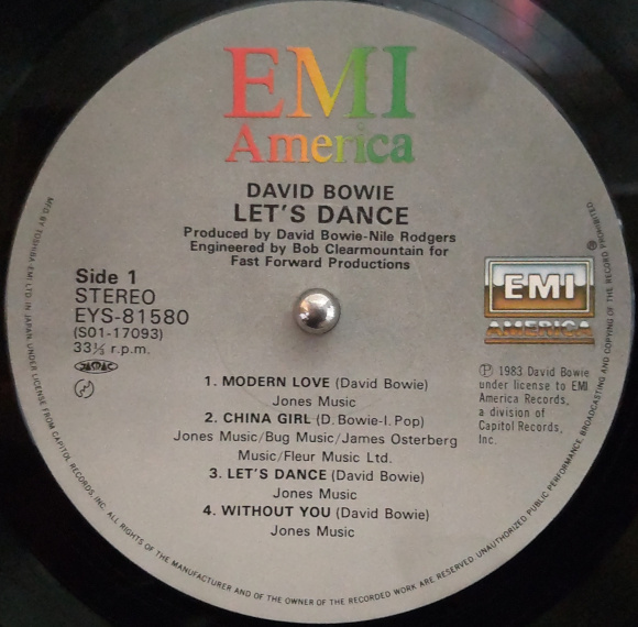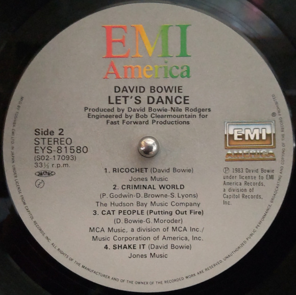 A面2曲目「チャイナ・ガール」、う〜ん、イントロがいかにも東洋風に聞こえる。おっと、ボーカルの声はまさしく、デビッド・ボウイ。この低音の響きが良いです。ちょっとダンサンブルなサウンドに浸ります。A面3曲目「レッツ・ダンス」、これが名曲、レッツ・ダンスなのです。当時もリアルタイムで聴いていたとは思うのですが、こうして時を経た今、改めて聴いてみると、とても良いです。サビ?のレッツ・ダンスのところが如何にも80年代風。しかし2024年に聴いてもよい曲調。そしてボーカルの声質が最高です。曲含めてアレンジもぎゅうぎゅうにならず、とてもシンプル。渋滞していない感がとても爽やかです。B面1曲目「リコシエ」、曲の作り方がYMO中期以降の坂本龍一氏の曲に良く似ている感じがしています。気のせいかもしれませんが、まあこれもデビッド・ボウイなんでしょう。B面2曲目「クリミナル・ワールド」、この曲も良いですね。ボーカルが高橋幸宏さんに似たような歌い方になっているような。サビのメロディラインがとても気に入りました。 | |