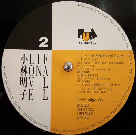 A面1曲目「恋に落ちて-Fall in love-」、今まではずっとCDの80年代ベストくらいでしか聴いたことがありませんでしたが、こうしてアナログレコードで聴く、恋に落ちても、良いです。この曲はご本人の作曲なんですね。というか、ライナーノーツを見てみると、全曲、小林明子さんの作曲、数曲は作詞もされています。シンガーソングライターなんですね。すみません、ドラマの主題歌のみの1発屋さんとばかり思っていました。アナログレコードを聴いて発見されることって結構あります。やっぱりアナログレコードって最高です。A面5曲目「冬の園」、透き通る高域部分の歌声に心癒されます。とても優しいサウンドです。アレンジもご本人で、アコースティックギターのサウンドに酔いしれています。シンプルなサウンドにボーカルがとても映えています。B面3曲目「夏の終わりに」、雄大なメロディラインにサウンドの大きさを感じます。改めて小林明子さんのシンガーソングライターとしての凄さを感じます。他の歌手にも楽曲を提供されているとのことで、アナログレコードを聴いて初めての発見感が物凄いです。季節はそろそろ秋に変わって欲しいですが、まだまだ暑い夏が続きそうです。そういう時はアナログレコードを聴いて心落ち着けましょう。 | |