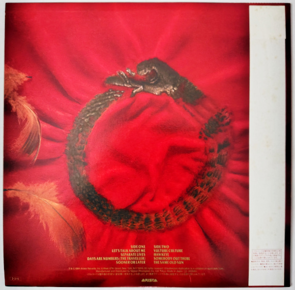 | A面1曲目「LET'S TALK ABOUT ME」、この曲は今まで私が聴いてきたアランパーソンズとは少し異なる印象。ロック調が強くなっている感じ。しかし、ポップでもある。アンモニア・アヴェニューでアランパーソンズを知った私としては少し新鮮。A面2曲目「SEPARATE LIVES」、そうそう、アランパーソンズとはこういう感じの曲が一番マッチしていると思う。この独特のボーカルがなんともいえない感覚を呼び起してくれます。シンプルなリズムに流れるようなメロディラインが最高。B面2曲目「HAWKEYE」、この曲はインストです。ループするリズムに美しいメロディー。楽器の音色も優しく響きます。B面3曲目「SOMEBODY OUT THERE」、曲の途中から曲調が変化してとても面白い。エレクトロ・ポップとして何故か心に寄り添うメロディーが良いです。 | |